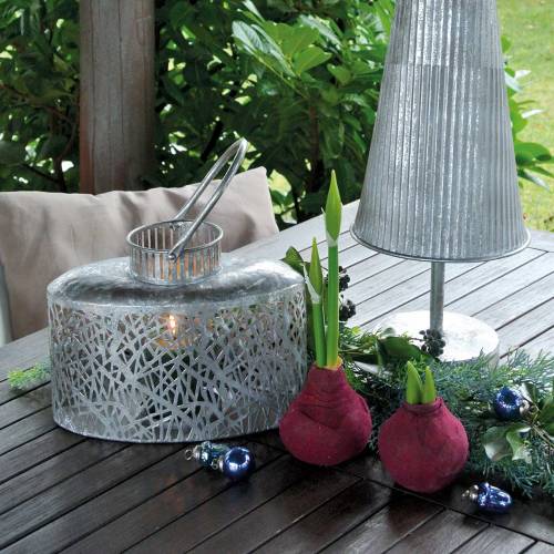 Edle Amaryllis mit burgundroter Knolle eignen sich für geschmackvolle Deko-Arrangements – nicht nur in der Weihnachtszeit!