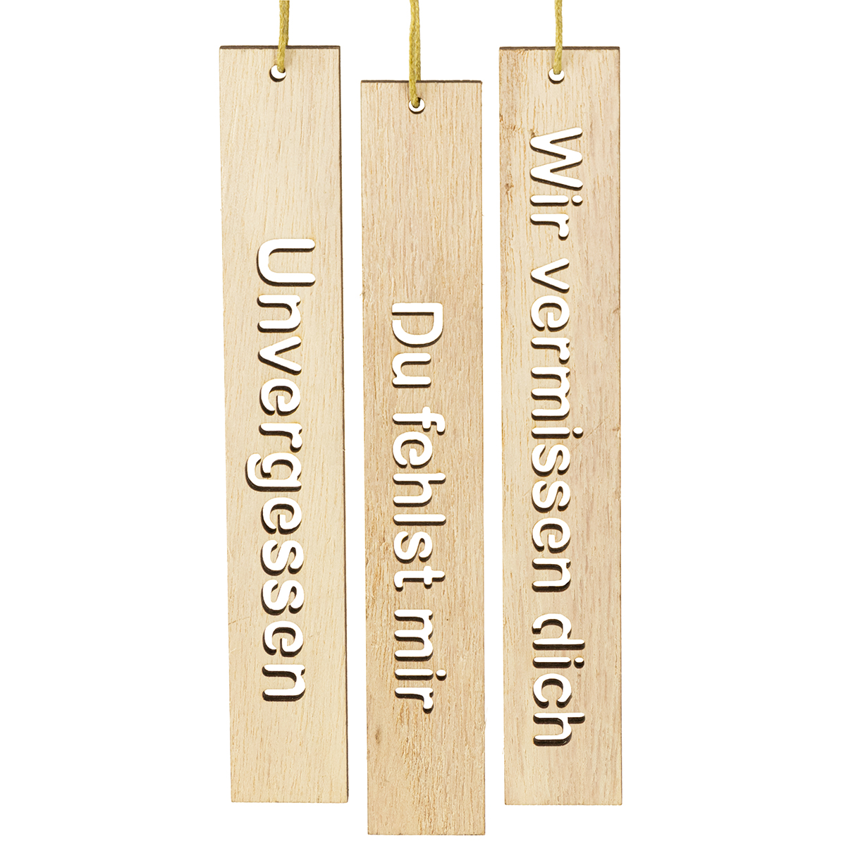 Anhänger Holz mit Trauerspruch Holzhänger 16×2,5cm 12 St