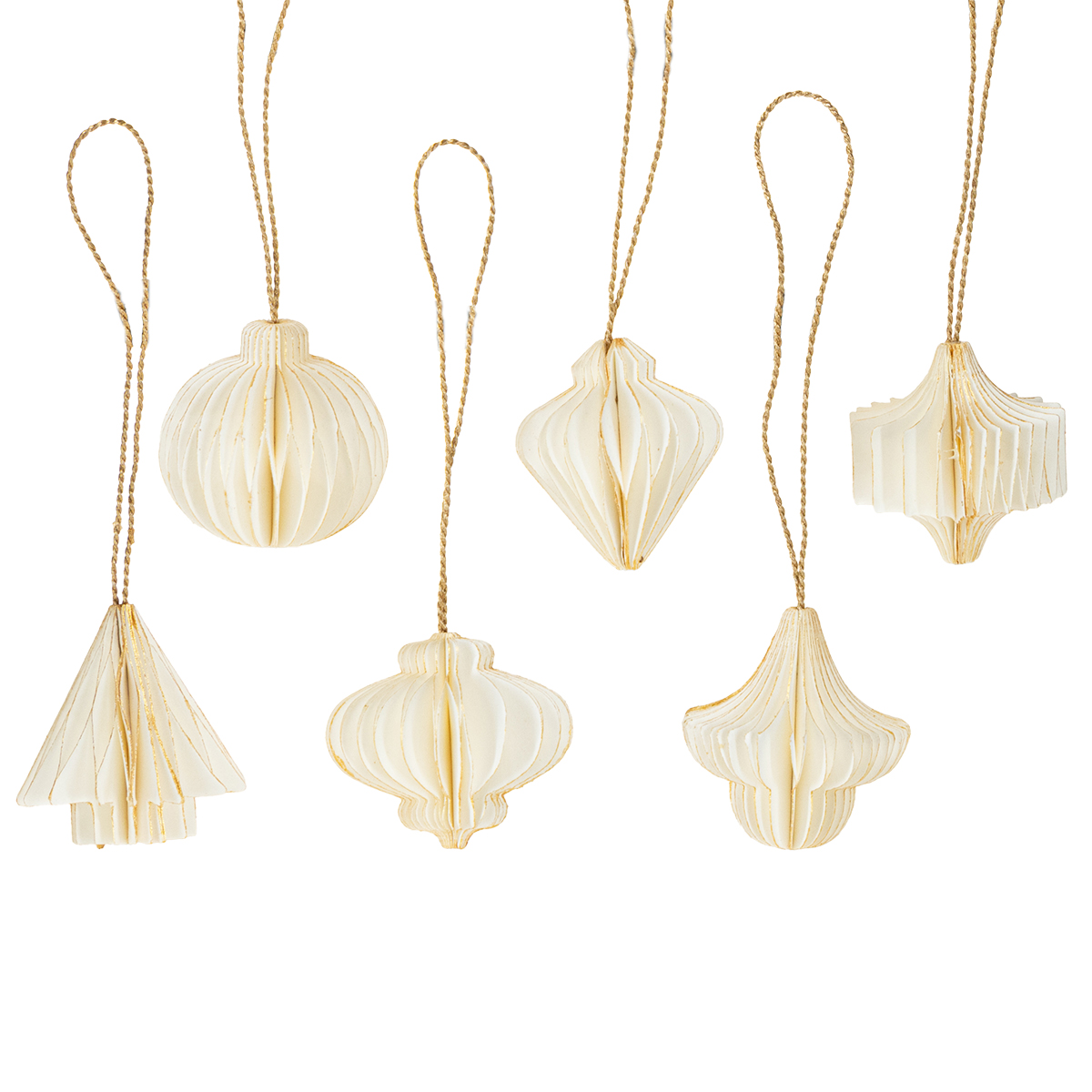 Der weiße Papier-Baumschmuck ist die perfekte Wahl für jeden Weihnachtsbaum – denn diese 6 kleinen Hänger aus Wabenpapier kombinieren zurückhaltenden Stil mit festlicher Eleganz.