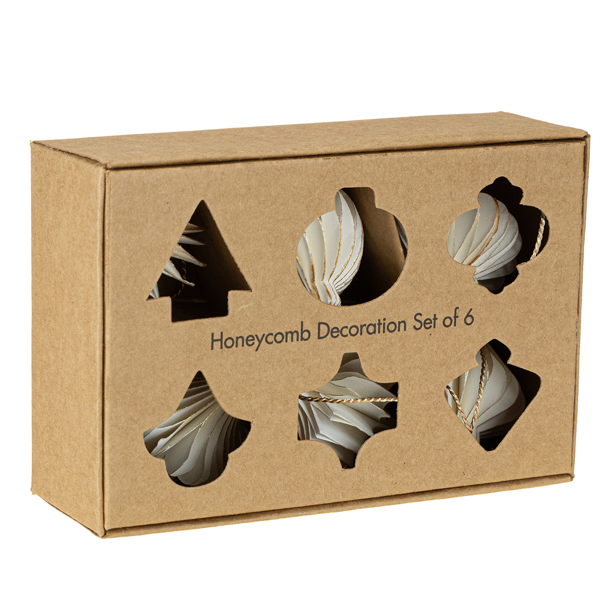 Baumschmuck aus Papier Wabenpapier Weiß Gold 4cm 6 St