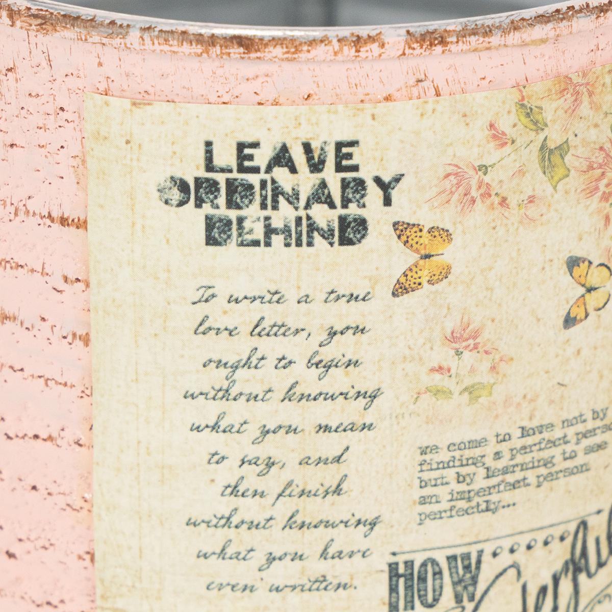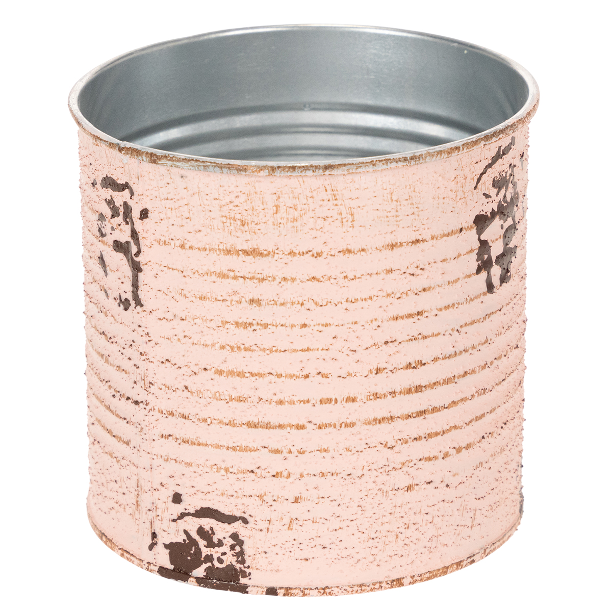 Der Blumentopf aus einer Deko-Dose in der Pastellfarbe Lachs ist mindestens genauso stimmungsvoll wie eine echte Vintage-Blechdose. Die Sommerdeko aus Metall hat jedoch den entscheidenden Vorteil, dass es hier keine scharfen Kanten gibt. So bepflanzen Sie die Blechbüchse ganz ohne Verletzungsgefahr. Unter der gebürsteten Pastellfarbe kommt auf den Rillen der Dose ein rostbrauner Farbton hervor. Außerdem betonen gemalte Rostflecken und ein nostalgisches Etikett den Shabby Chic der Retro-Dose. Innen ist der Dekotopf ganz schlicht in Silber gehalten.
