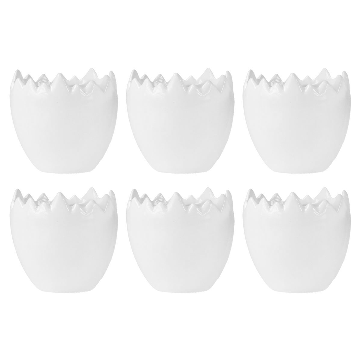 Nur noch die Hälfte einer angebrochenen Eierschale stellen die niedlichen Blumentöpfe dar. Wie eine Krone ziert die Bruchstelle die Keramik-Ei-Schale.