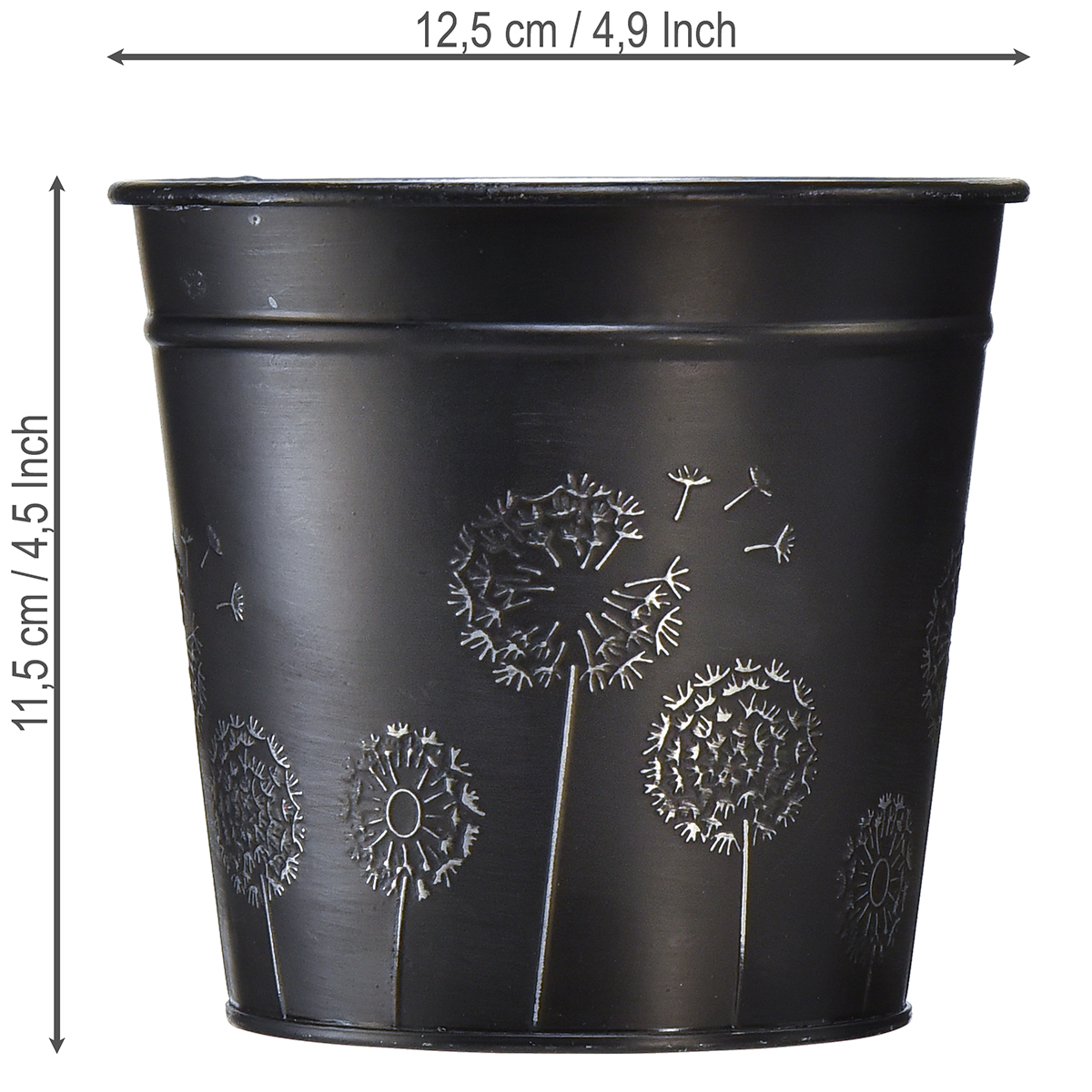 Blumentopf Schwarz Silber Übertopf Metall Ø12,5cm H11,5cm