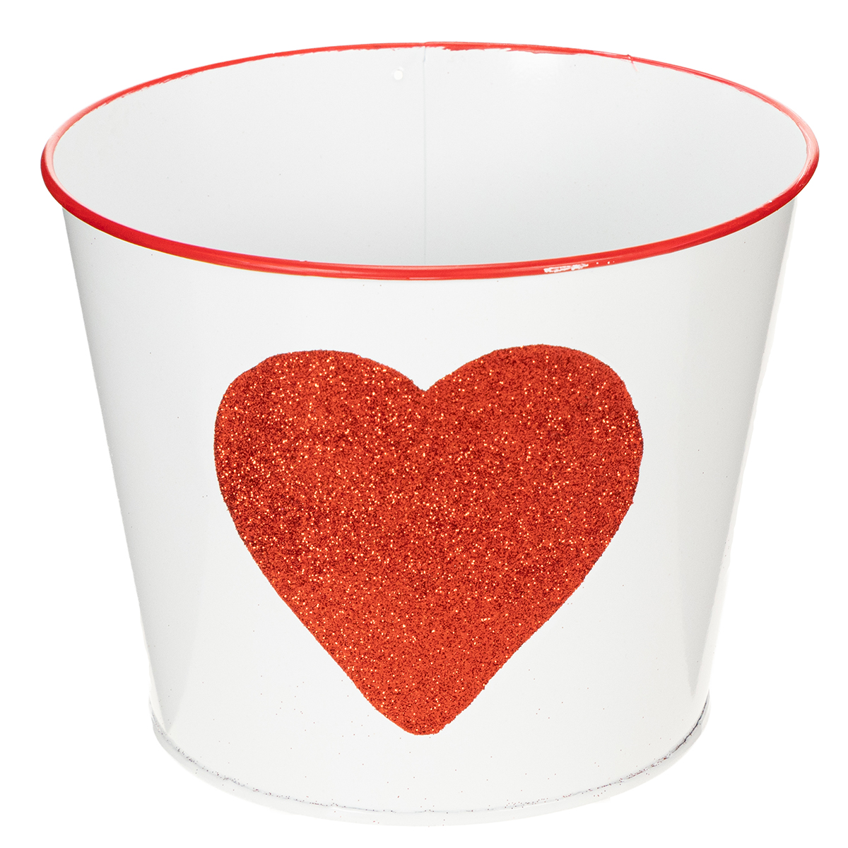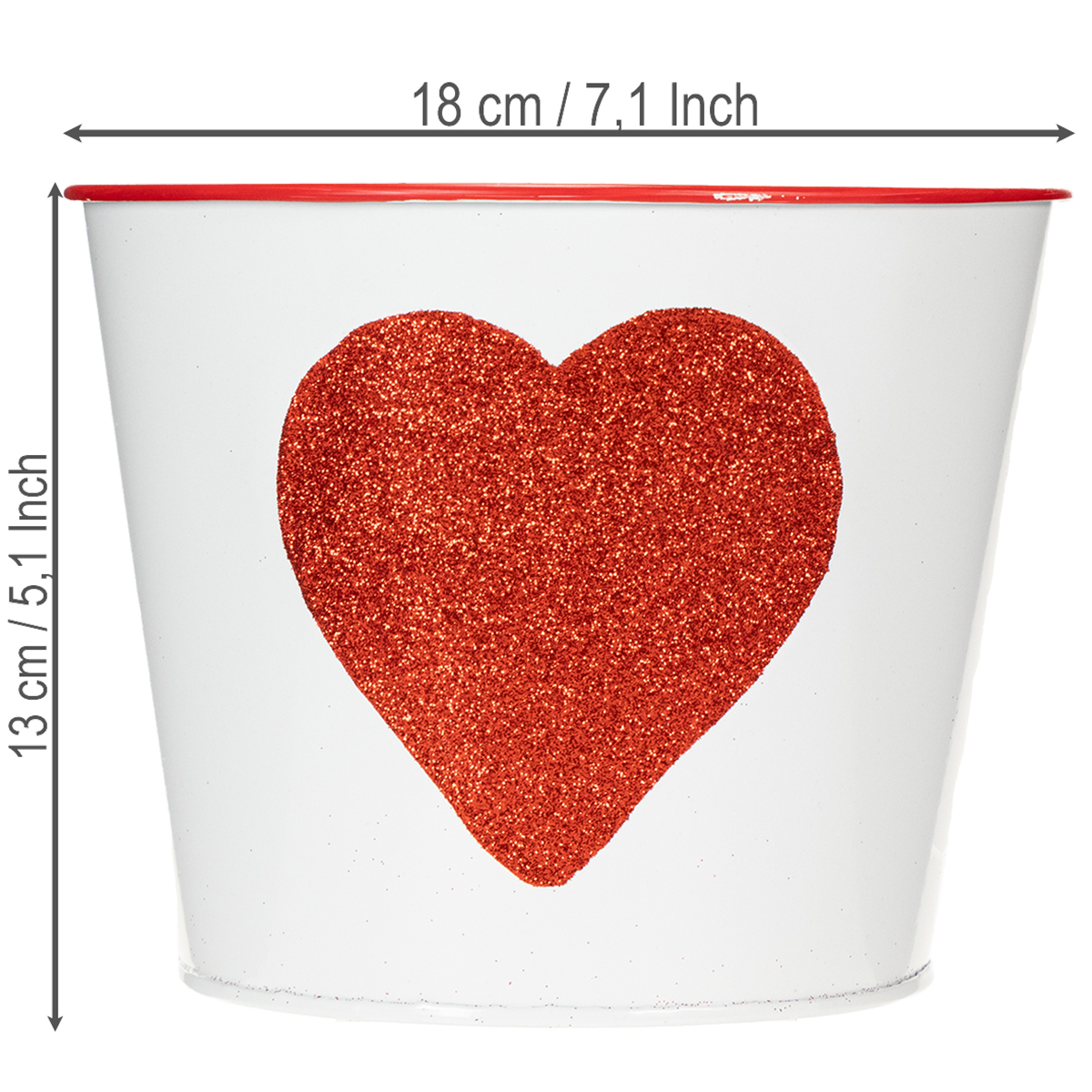 Blumentopf Weiß mit Herz in Rot Übertopf Pflanztopf Ø18cm H13,5cm