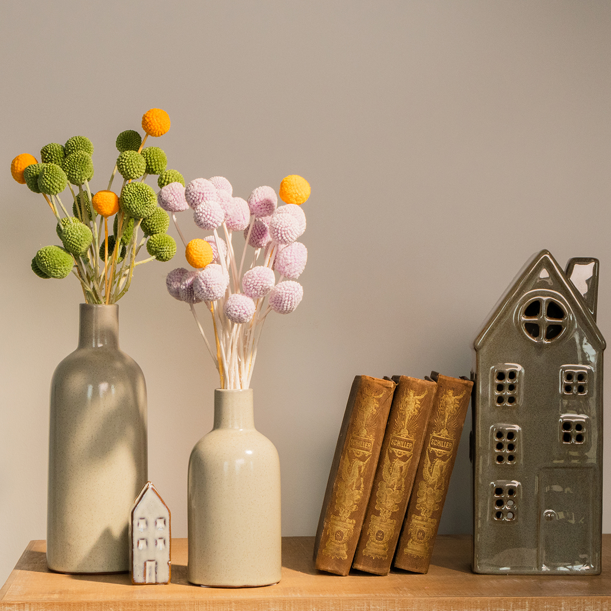 Craspedia – helllila Trockenblumen für moderne Tischdekoration