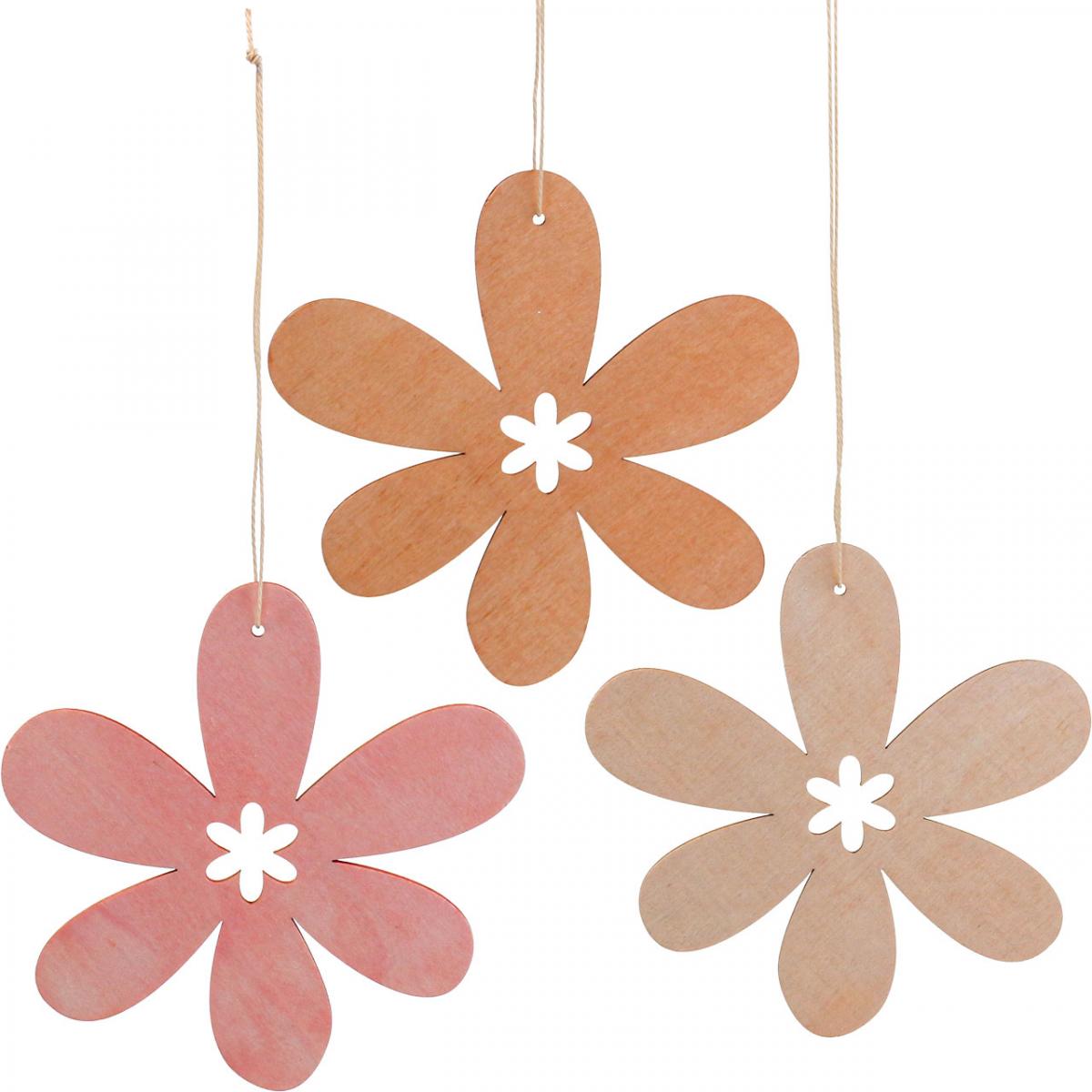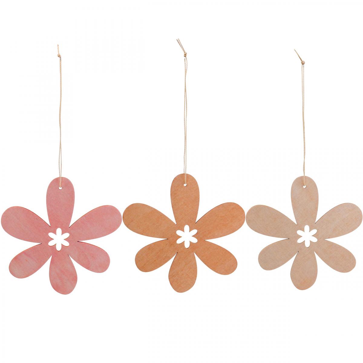 Produktname: Deko Blume Holzanhänger Holzblume Orange/Rosa/Gelb 12St