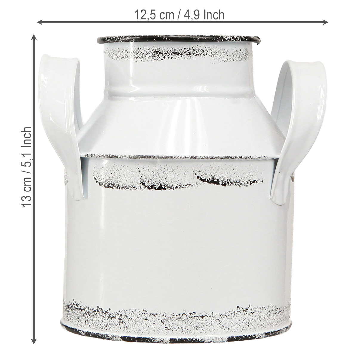 Die Deko-Kanne mit Henkeln aus Metall in Weiß und Schwarz versprüht einen rustikalen Charme, der an längst vergangene Zeiten erinnert. Mit ihrer Höhe von circa 13 cm ist sie sowohl kompakt als auch vielseitig einsetzbar. Diese Metall-Deko, bestehend aus zwei stilvollen Deko-Kannen, ist ein echtes Highlight für jedes Zuhause, das eine Mischung aus modernem Design und nostalgischem Flair sucht. Die Kannen sind mit schwarzen Rändern versehen, die ihnen einen rustikalen Touch verleihen. Im Landhausstil gehalten, passen sie perfekt zu einer gemütlichen Einrichtung, die auf rustikale Deko setzt. Ob als Vase für Trockenblumen oder als einzigartiges Element auf Ihrem Esstisch, diese Metallkannen fügen sich harmonisch in jede Raumgestaltung ein. Nutzen Sie die Kannen, um in Ihrem Wohnzimmer oder Ihrer Küche einen stilvollen Akzent zu setzen.