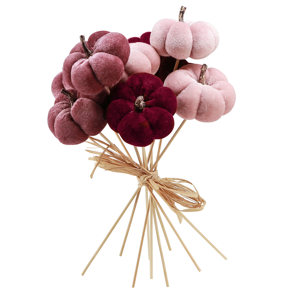 Deko Kürbis aus Stoff Kürbis am Stab Burgund Rosa Ø7cm 9St