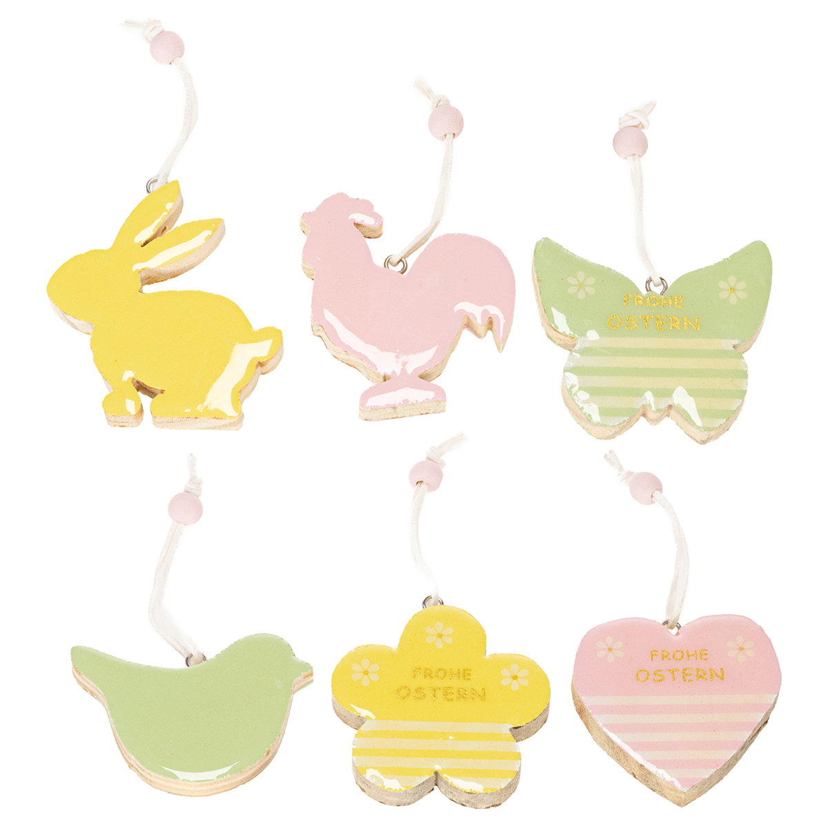 Osterdeko zum Hängen Osterfiguren Anhänger Holz Pastellfarbe 7cm 6St