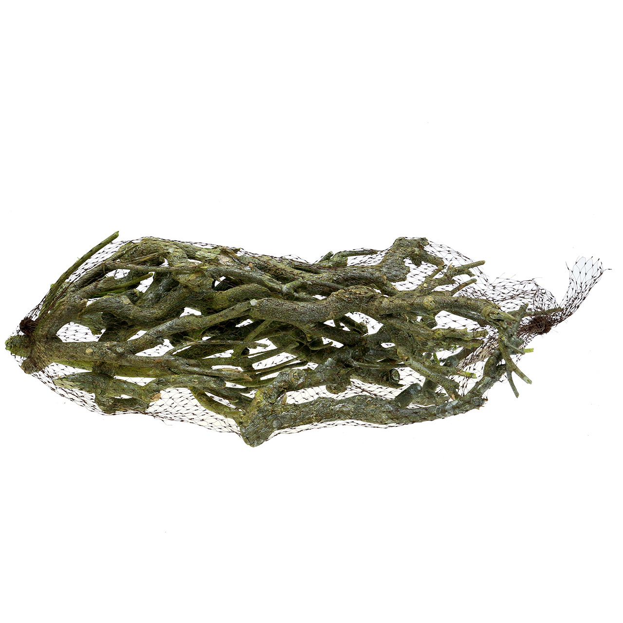 Der Dekoast aus dem Holz des Currykrautes in Grün gewaschen weist als Naturmaterial verschiedene Größen auf. Sie erhalten die Zweige in einem Netz gebündelt zu 500 Gramm.