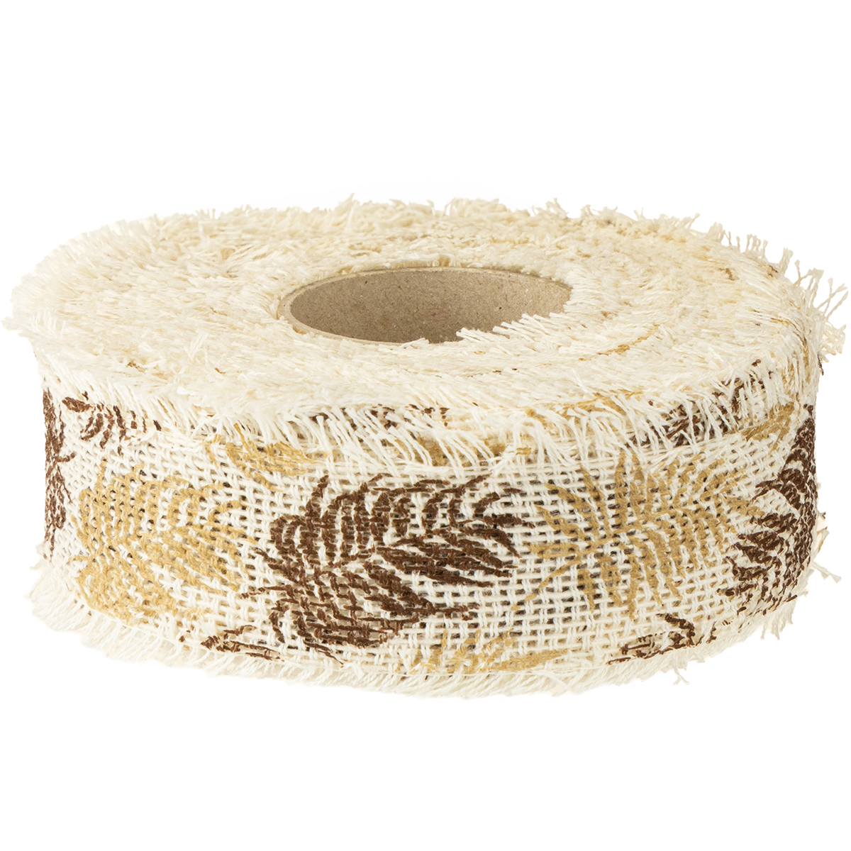 Produktname: Dekoband mit Fransen aus Baumwolle und Blättermotiv Braun Beige