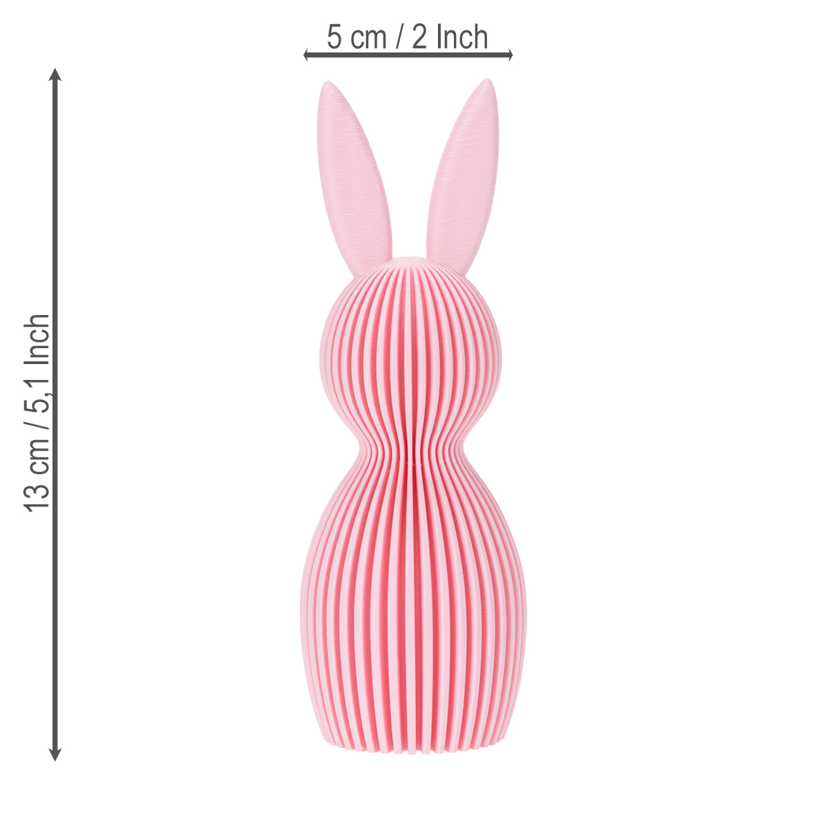 Klein, aber fein – dieser Dekohase ist ein wahres Highlight unter der Osterdekoration. Mit seiner Höhe von 13 cm und einem harmonischen Rosa ist er perfekt proportioniert, um Aufmerksamkeit zu erregen, ohne aufdringlich zu wirken. Die detailreiche Struktur der Oberfläche erinnert an eine kunstvolle Wabenoptik, die an handgefaltetes Papier erinnert, tatsächlich jedoch aus robustem Kunststoff besteht. Dadurch eignet er sich nicht nur für den Innenbereich, sondern ist auch strapazierfähig genug, um zum Beispiel in einem wettergeschützten Bereich verwendet zu werden.