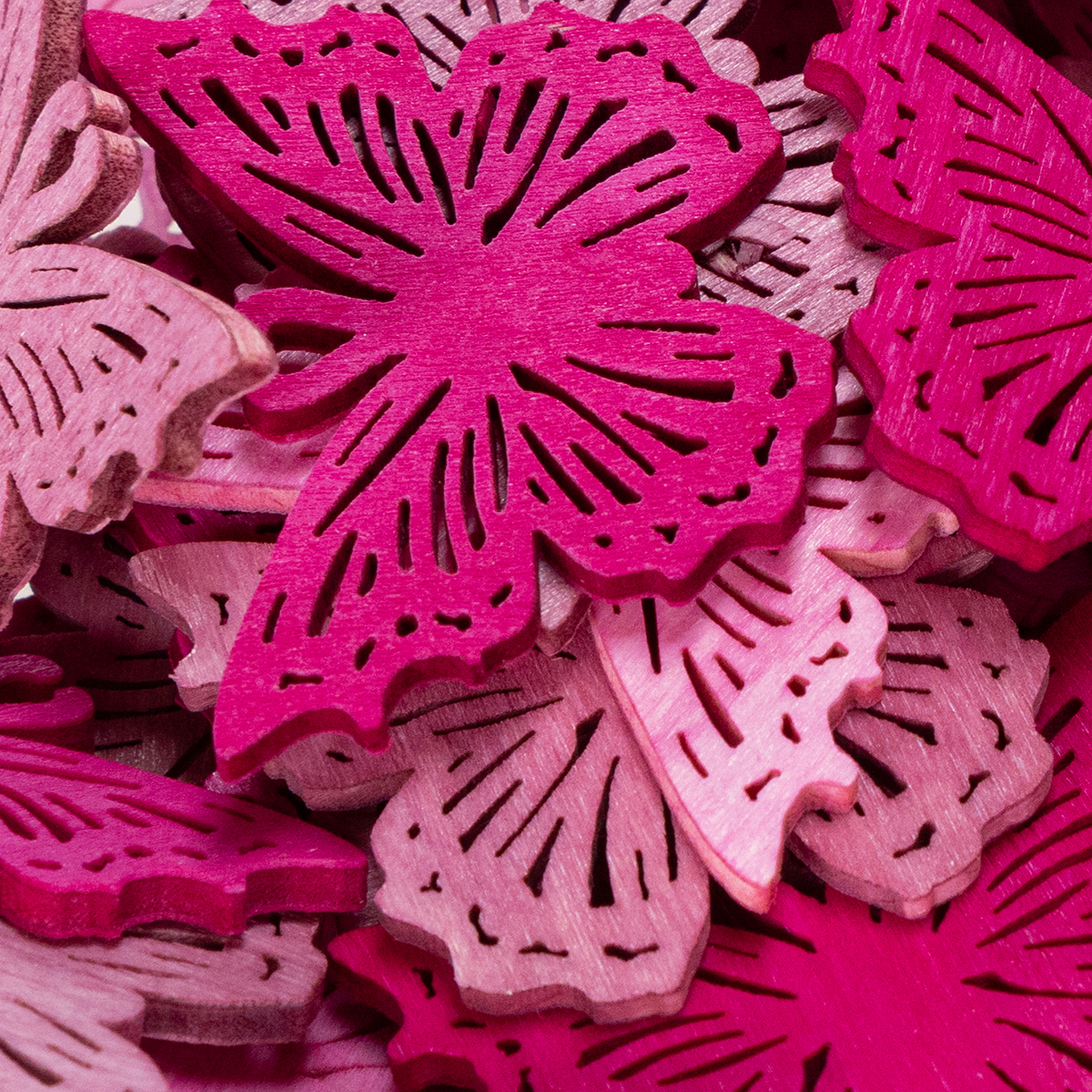Die Schmetterlings Streuelemente aus feinem Holz sind 4 cm groß und kommen in einer praktischen Packung mit 72 Stück. Das ist genug, um gleich mehrere Tische, Schalen oder auch größere Dekorationen auszustatten. Die Farbgestaltung in Rosa, Pink und Lila ist dabei dezent und frühlingshaft – ein echter Hingucker, der weder aufdringlich noch langweilig wirkt. Wer es etwas natürlicher mag, wird das fein gemaserte Holz und die filigrane Gestaltung der Flügel lieben. Die Schmetterlinge passen besonders gut zu modernen und klassischen Dekorationsstilen, können aber auch im Shabby Chic oder Landhausstil punkten.