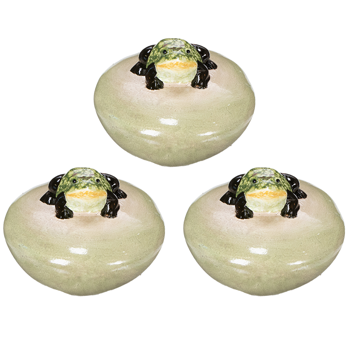 Dekorativer Frosch auf Stein für jahreszeitlich wandelbare Dekoration 13cm 3St