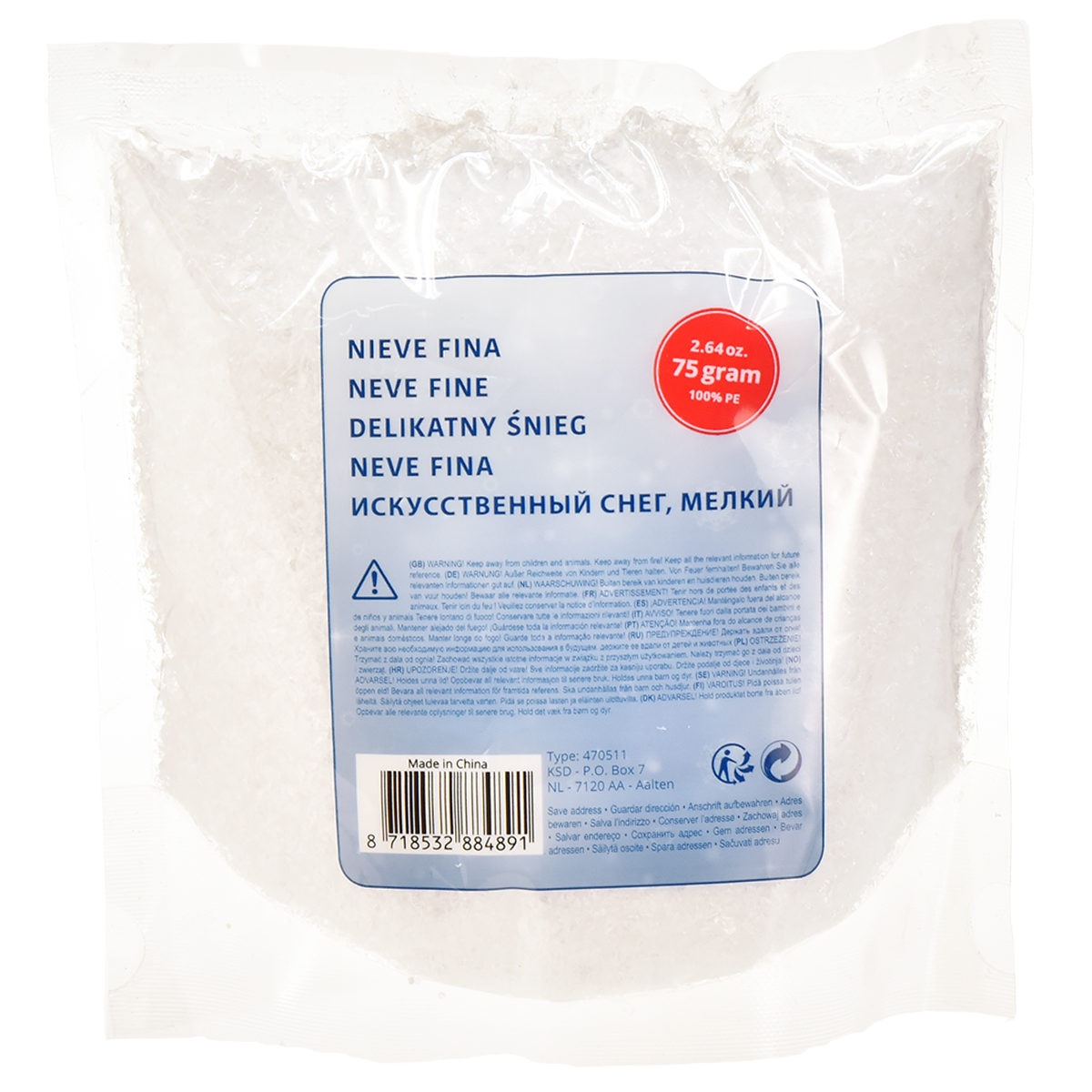 Produktname: Dekoschnee aus PE Künstlicher Feiner Weißer Schnee 75g