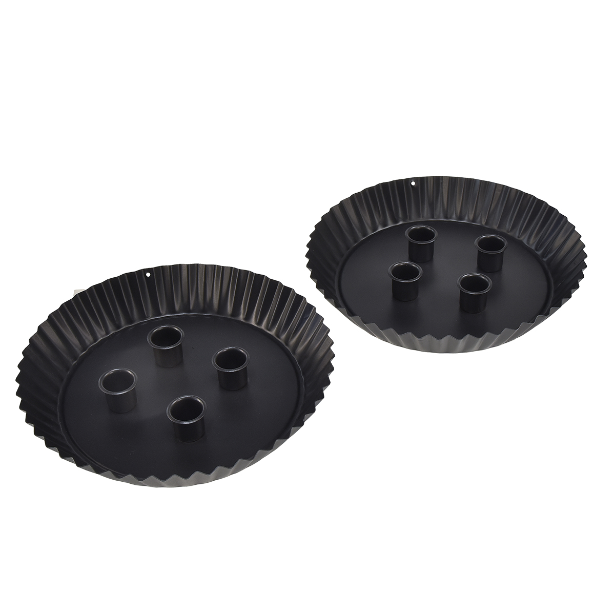 Design-Stabkerzenhalter aus Metall in Kuchenform – Schwarz, Ø 24 cm – Elegante Tischdeko für 4 Kerzen – 2St