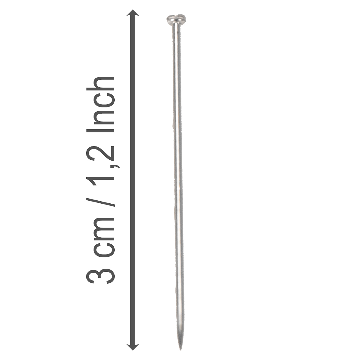 Unsere silberfarbenen Stecknadeln mit einer Länge von etwa 30mm aus vernickeltem Eisen sind die perfekte Wahl für alle, die auf der Suche nach langlebigen und vielseitigen Befestigungselementen sind. Diese Stecknadeln bestechen nicht nur durch ihre hochwertige Verarbeitung, sondern auch durch ihre glänzende, silberne Oberfläche, die jedem Projekt eine elegante Note verleiht, sich durch den kleinen Kopf aber auch zwischen Zweigen und Blättern verstecken lassen. Ob beim Basteln, Dekorieren oder floristischen Arbeiten – diese Stecknadeln bieten hervorragenden Halt. Da die vernickelten Stecknadeln rostfrei sind, eignen sie sich ideal für den Einsatz im Innen- und Außenbereich. Besonders in der floristischen Gestaltung kommen sie zum Einsatz, sei es bei der Erschaffung von Blumenarrangements oder der Erstellung und Fixierung von Blumengestecken. Die Großpackung von 500g bietet Ihnen ausreichend Stecknadeln für zahlreiche Projekte, sodass Sie jederzeit kreativ sein können. Lassen Sie sich von der Qualität und Vielseitigkeit dieser kleinen Helfer überzeugen!