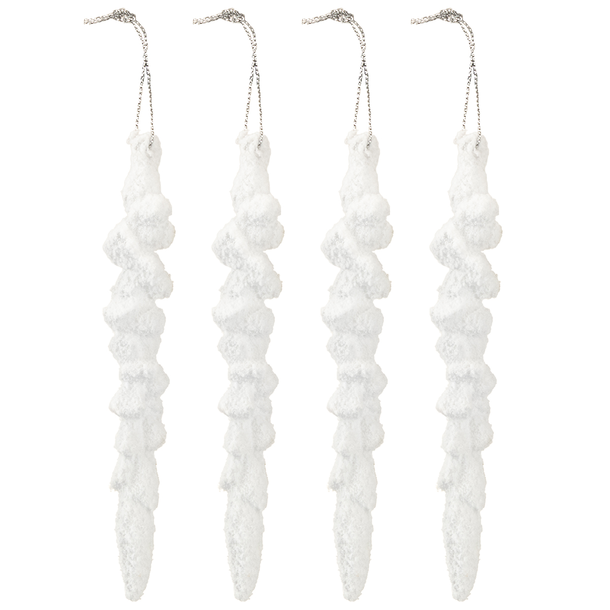 - 4 beschneite Eiszapfen mit silbernem Aufhänger