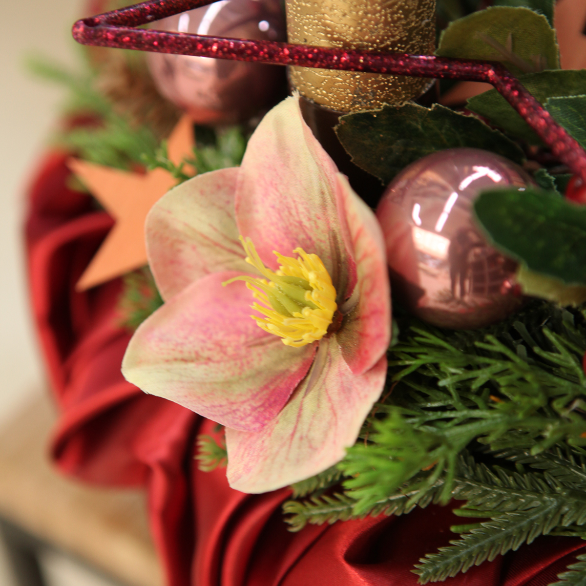 Verwendungszweck: Dekorationsartikel für die Weihnachtszeit und Silvester, inklusive Tischschmuck, Kränze, Figuren, Gestecke, Anhänger und floristische Arrangements.