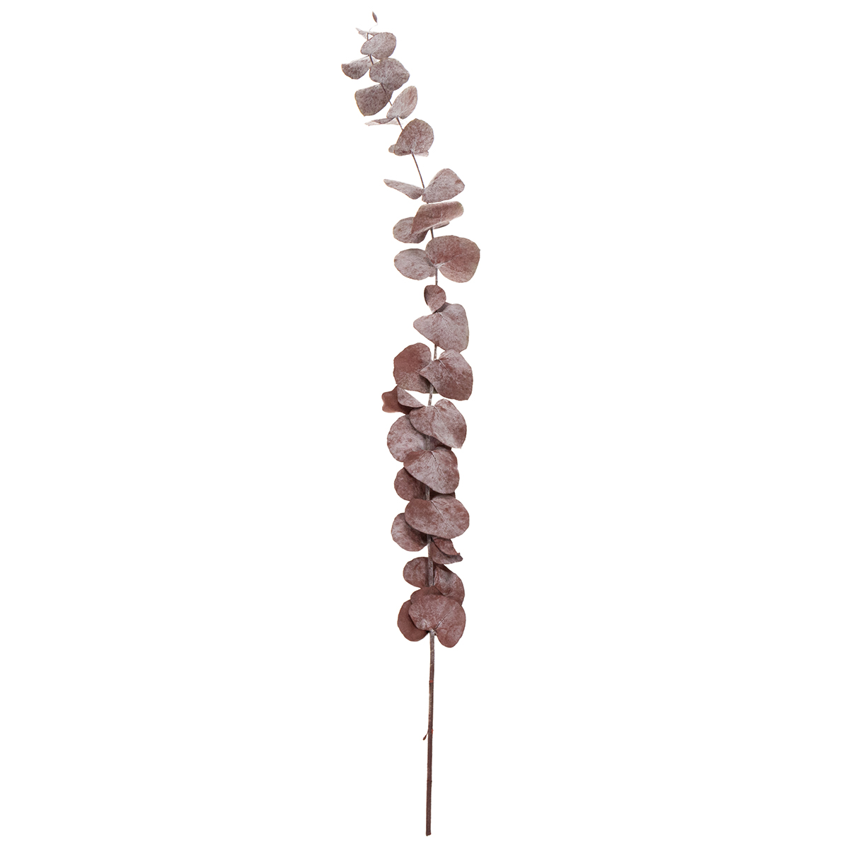 Die Eukalyptus-Blätter der Gattung Eucaliptus Cynerea sind gefärbt und begeistern so durch ein dezentes Bordeaux-Rot, was die Natur-Deko besonders attraktiv macht. Die Blätter sind typisch in einer breiten ovalen Form gewachsen und paarig angeordnet.