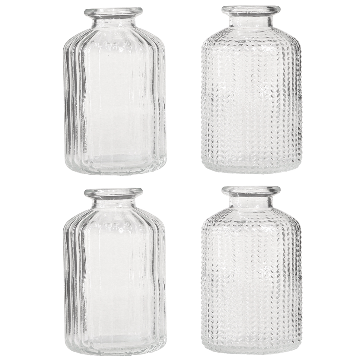 Flaschenvase Glas Minivasen mit Retro Dekor H9cm 4St