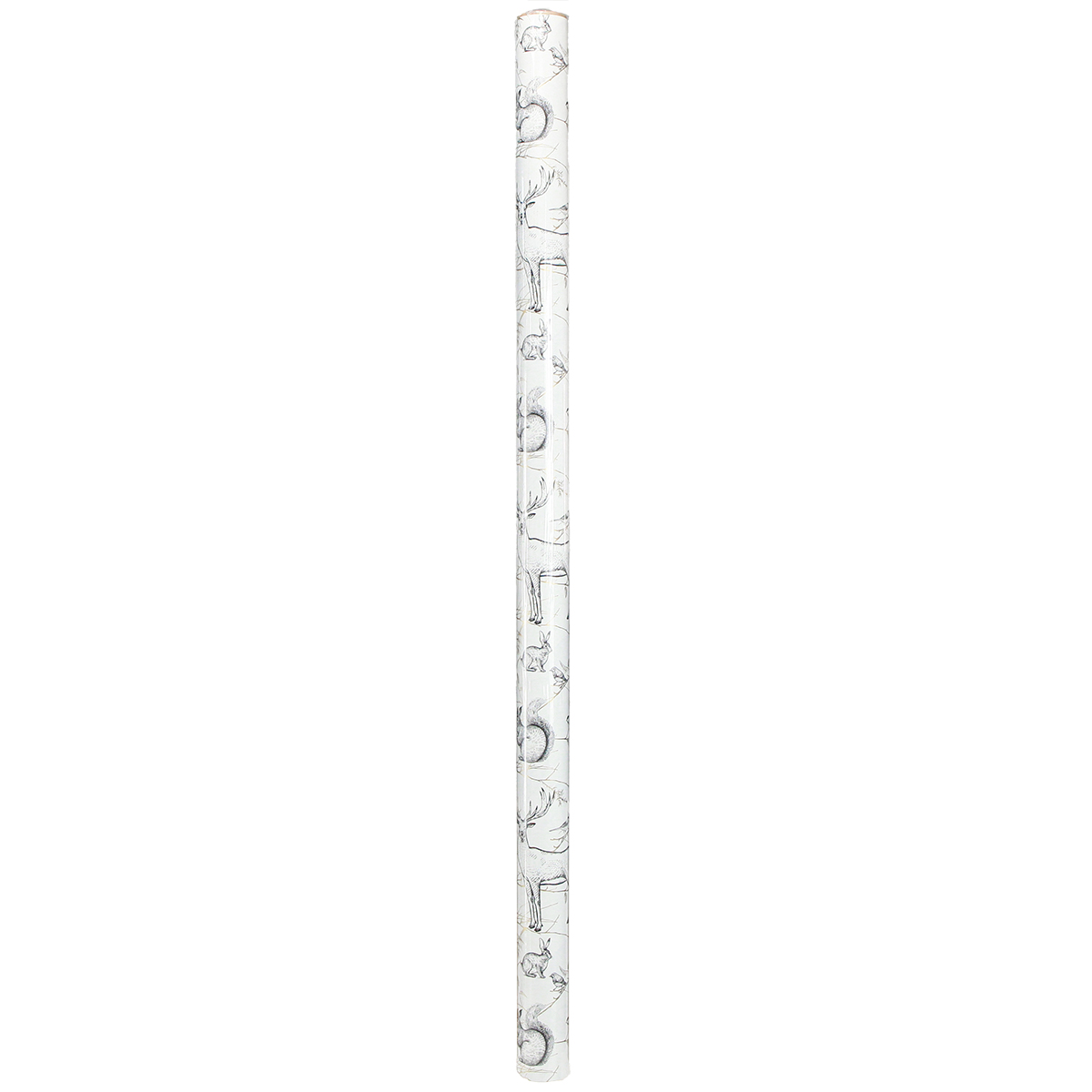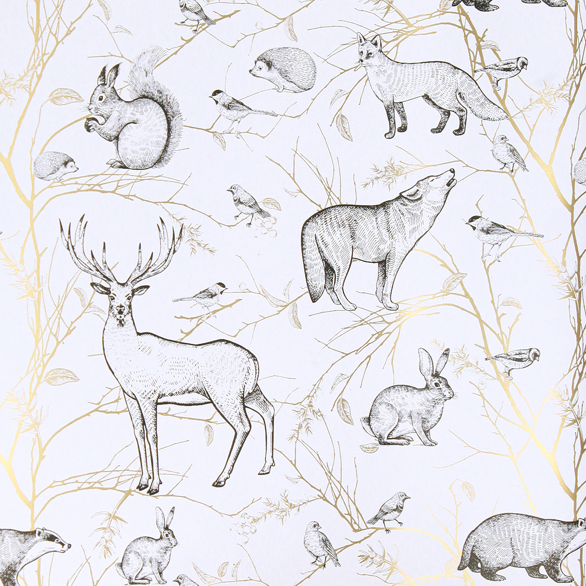 Produktname: Geschenkpapier Tiere Weiß Grau Gold Herbst Winter 200cm