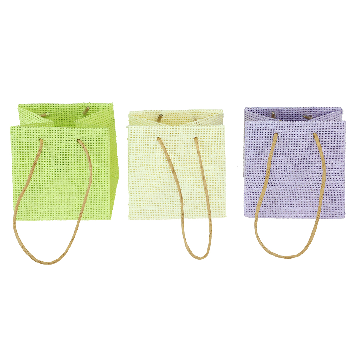Geschenktüten gewebt mit Henkeln Grün, Gelb, Lila 10,5cm 12 St