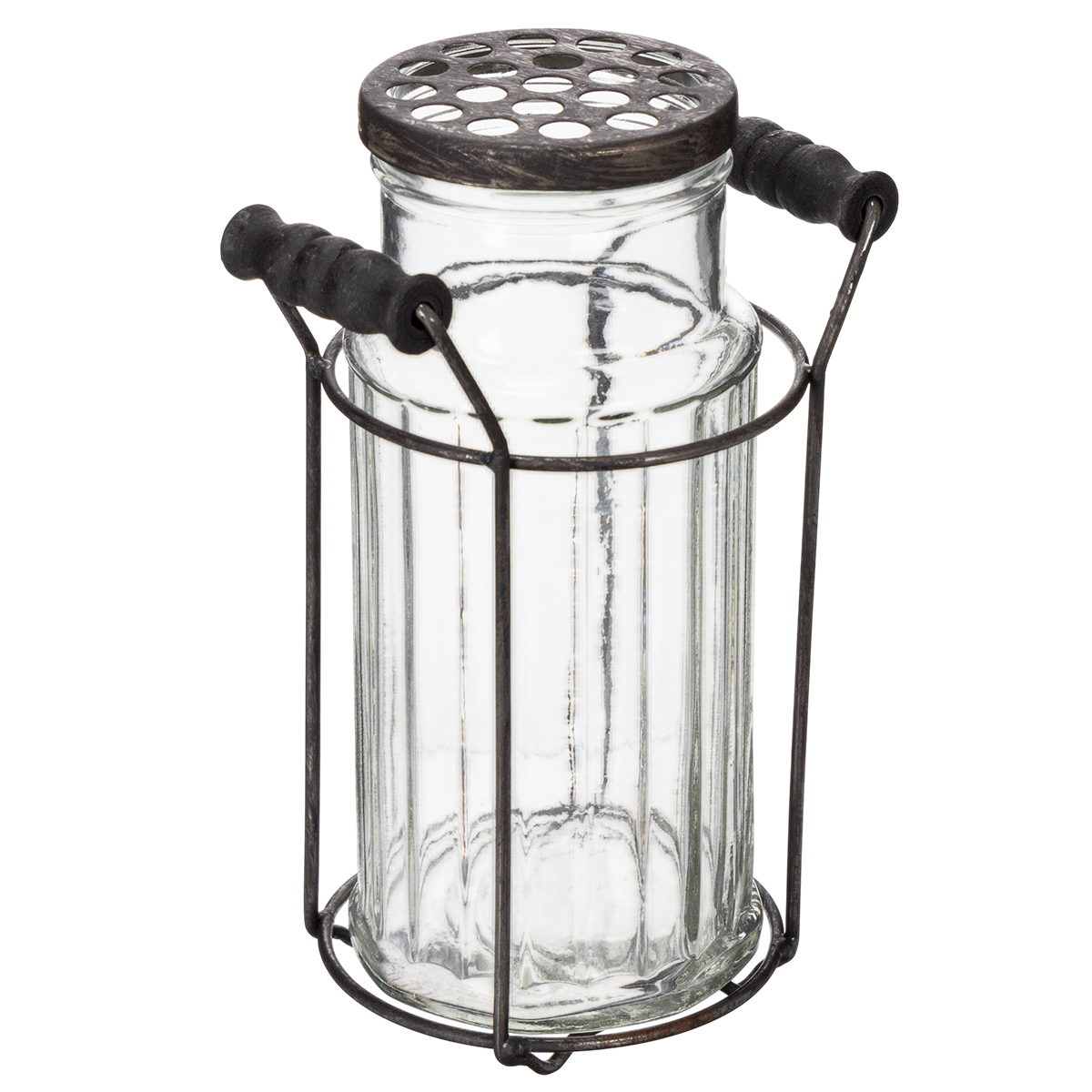 Die Kombination aus Glas und Metall bringt einen Hauch von Industrial Chic in Ihr Zuhause, während die filigrane Verarbeitung einen klassischen Blickfang bietet. Gefertigt aus hochwertigem Glas und einem robusten Metallgestell, überzeugt diese Flasche nicht nur optisch, sondern auch durch ihre Langlebigkeit. Der Deckel mit den kleinen Öffnungen macht sie besonders vielseitig: Nutzen Sie sie als Vase für einzelne Blumen, als dekorativen Küchenutensilienhalter oder gar als kreativen Kerzenhalter. Egal, ob Wohnzimmer, Küche oder Flur – diese Glasflasche findet überall ihren Platz.
