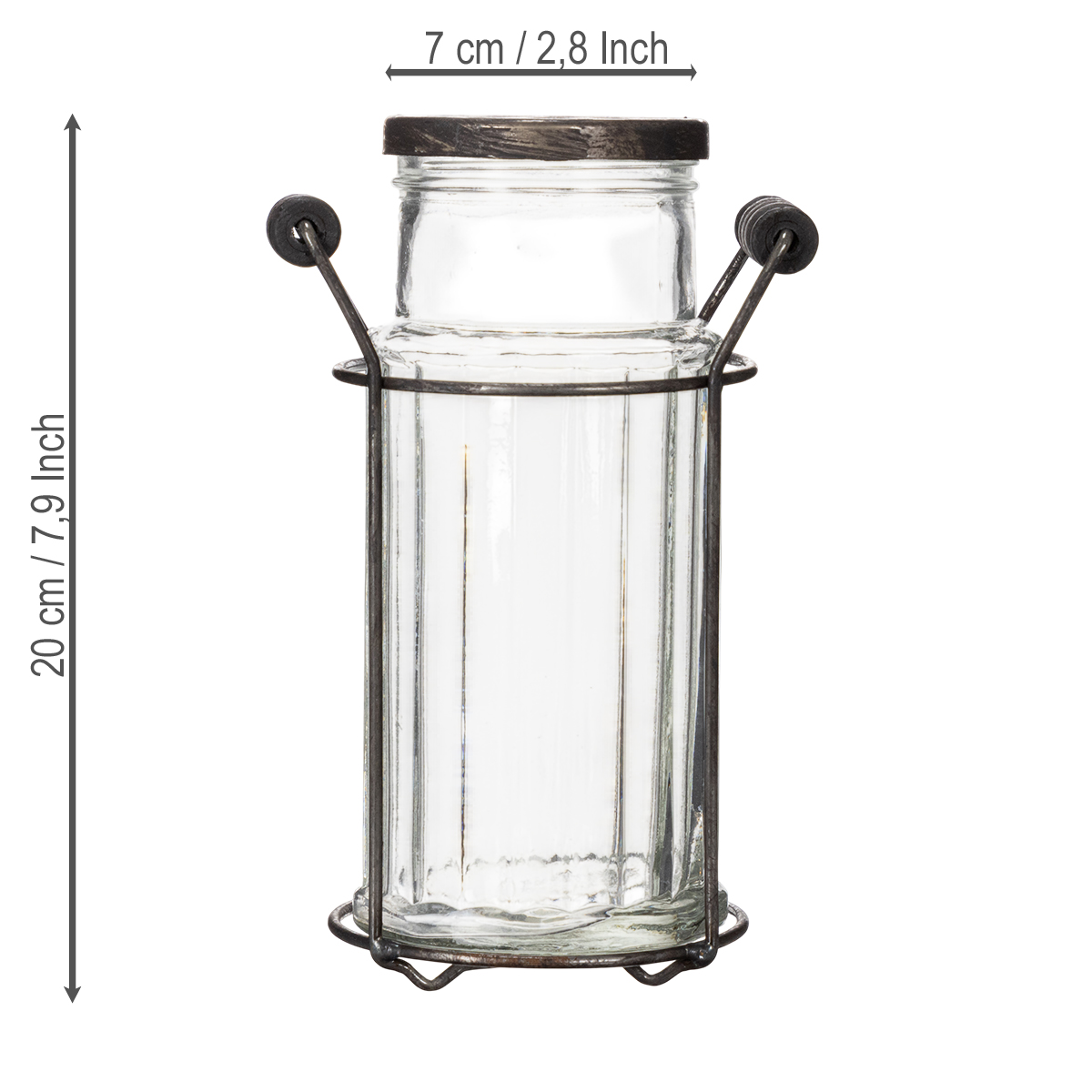 Glasflasche im Metallkorb ideal für dekorative Akzente im Wohnzimmer 20cm