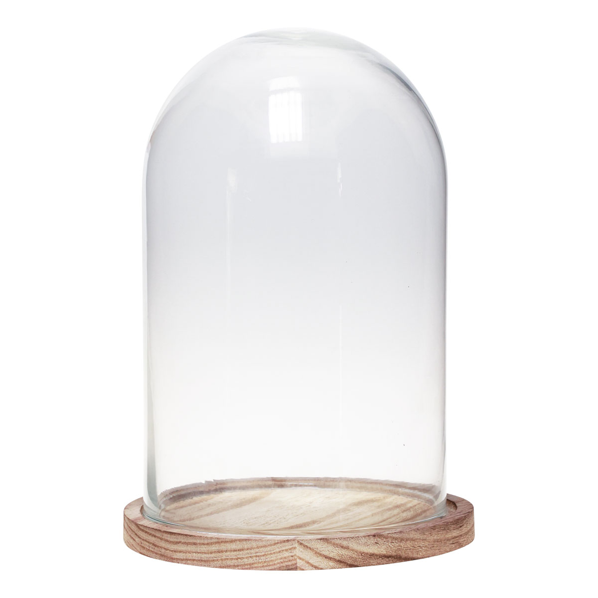 Glasglocke mit Teller aus Holz Glas Deko Ø17cm H25cm