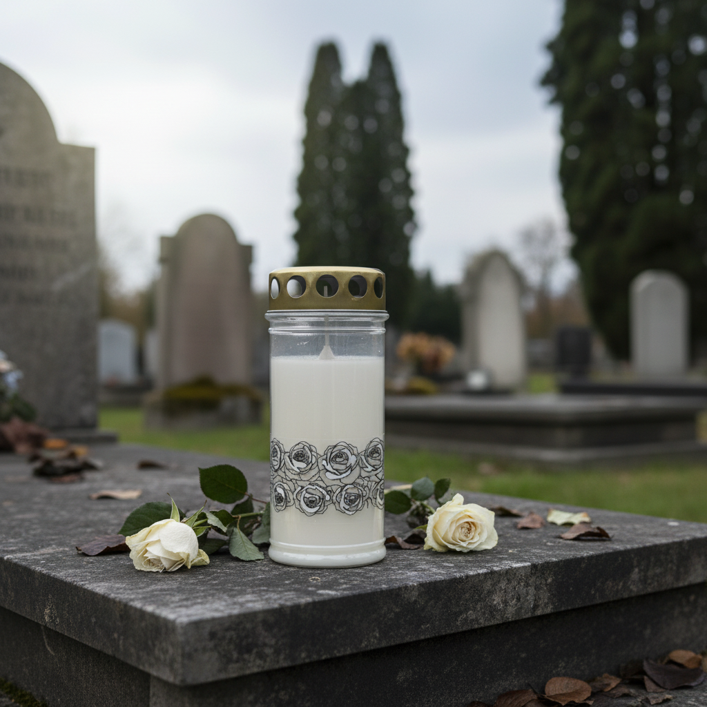 Nina G. und 117 andere lieben Grabkerze Weiß Rosen...