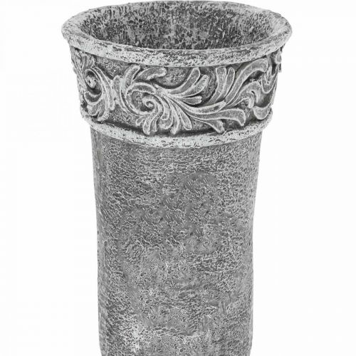 Diese Grabvase mit Erdspieß ist am Rand mit floralen Ranken verziert. Ein solcher Grabschmuck ist ein Muss für Trauerfloristik in der Grabgestaltung!Stellen Sie rund ums Jahr als kleinen Gruß Sträußchen in die Steckvase in Steinoptik – und das Grab Ihrer Lieben ist immer mit einem persönlichen Element gestaltet!
