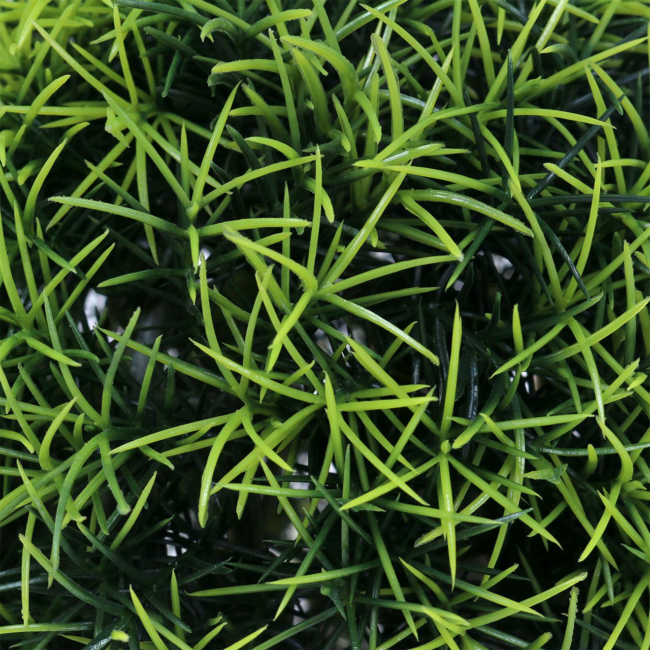 Darüber hinaus können Sie die runde Kunstpflanze auch super mit weiteren Deko-Elementen kombinieren. Wenn Sie beispielsweise ein Geschäft besitzen und gerne Ihr Schaufenster dekorieren, können Sie für die Sommerdekoration diesen Grasball einsetzen und mit echten Schnittblumen, Tierfiguren sowie ein paar Sträuchern zusammenstellen und so eine effektvolle und lebendige Sommerwelt entstehen lassen.