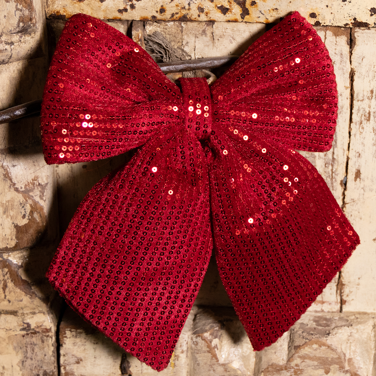 Große Samtschleife in Dunkelrot – Eleganz und Pailletten mit festlichem Glanz