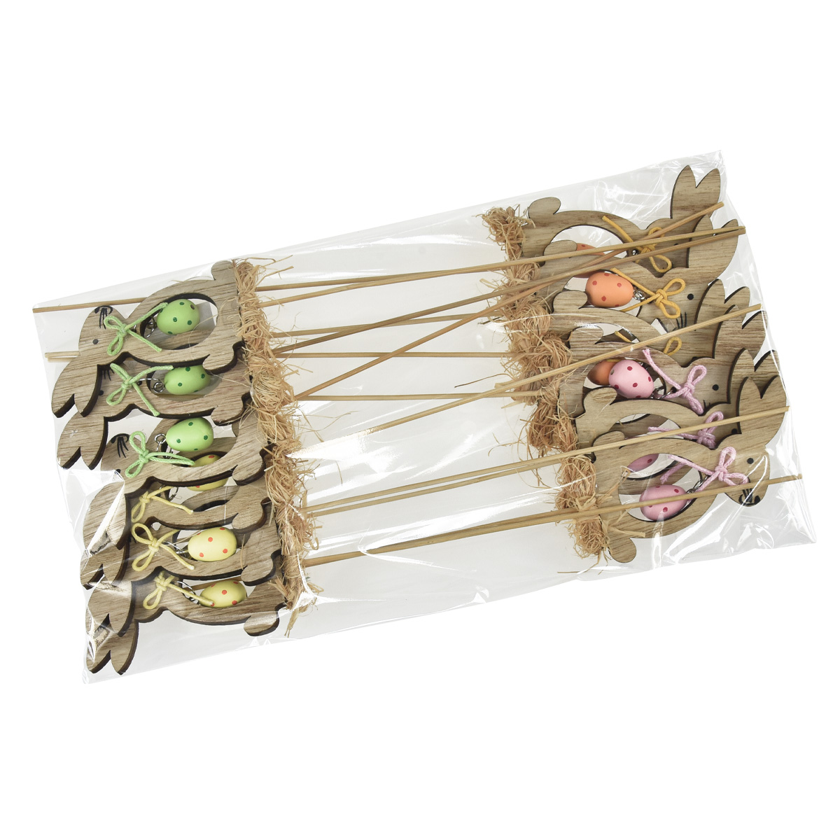 Blumenstecker Holz Dekostecker Hase mit Ei 5x8,5cm 12 St