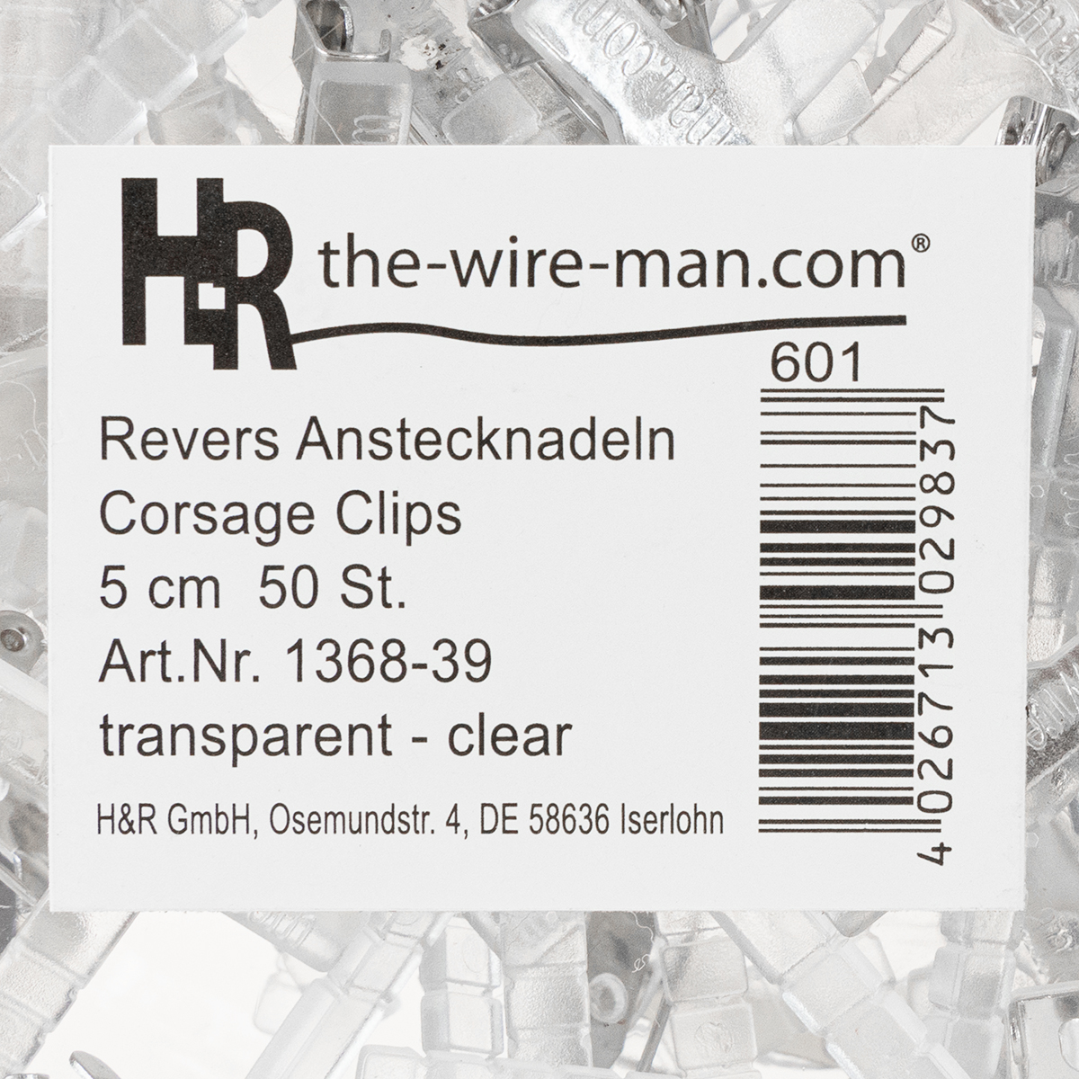 Der Hochzeitsanstecker aus transparentem Kunststoff und einer silbernen Nadel wird in einer Box zu insgesamt 50 Stück geliefert und hat eine Länge von ungefähr 5 Zentimetern. So können Sie den Anstecker auch nutzen, um Namenschilder für einen Workshop, kleine Figuren für eine Mottoparty oder floralen Schmuck für einen Galaabend dort anzubringen.