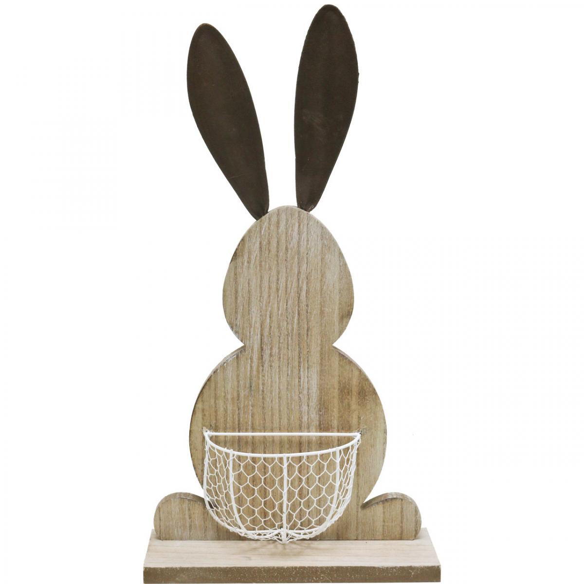 Holzhase mit Korb, Frühlingsdeko, Osterhase mit Pflanzkorb Natur, Weiß H48cm