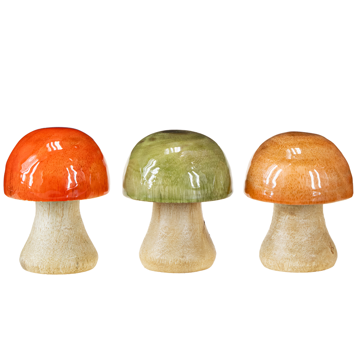 Holz Deko-Pilze Herbstdeko mit bunten Kappen in 3 Farben, 9 Stk