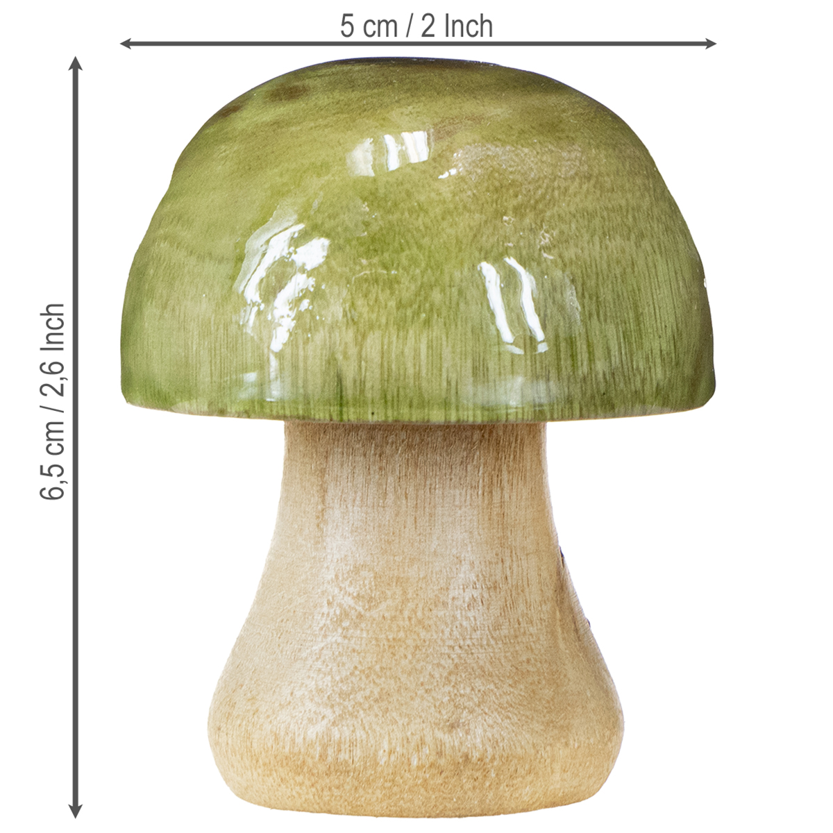 Mit einer Höhe von 6,5 cm sind sie klein genug, um sich problemlos in Arrangements einzufügen, aber groß genug, um als Hingucker zu dienen. Besonders auf einem herbstlich geschmückten Tisch kommen die kleinen Details wie die einzigartige Maserung des Holzes richtig gut zur Geltung. Stellen Sie sie in eine Schale mit Herbstlaub, kombinieren Sie sie mit Lichtern oder setzen Sie sie in Szene, indem Sie sie einfach einzeln auf Holztabletts oder Regalen platzieren. Wer das Thema Herbstdeko liebt, wird auch von der Vielseitigkeit der Pilze begeistert sein: Ob für Familienfeiern, Geburtstage, Herbstfeste oder einfach als gemütliche Tischdekoration für den Alltag – die Pilze lassen sich überall einsetzen.