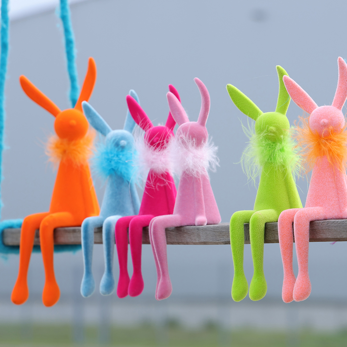 Unsere Osterhasen-Deko überzeugt durch eine gelungene Kombination aus Stil und Funktionalität. Durch ihre spezielle Kantenhocker-Form sitzen sie mit scheinbar lässig baumelnden Beinen perfekt am Rand aller waagerechten Flächen, ohne viel Platz einzunehmen. Besonders kreativ wirken sie auf einem Sideboard im Wohnzimmer, einem Regal oder sogar in einem frühlingshaft gestalteten Empfangsbereich. Die Federboa verleiht ihnen einen eleganten und trotzdem spielerisch leichten Look, der einfach das Herz erfrischt.