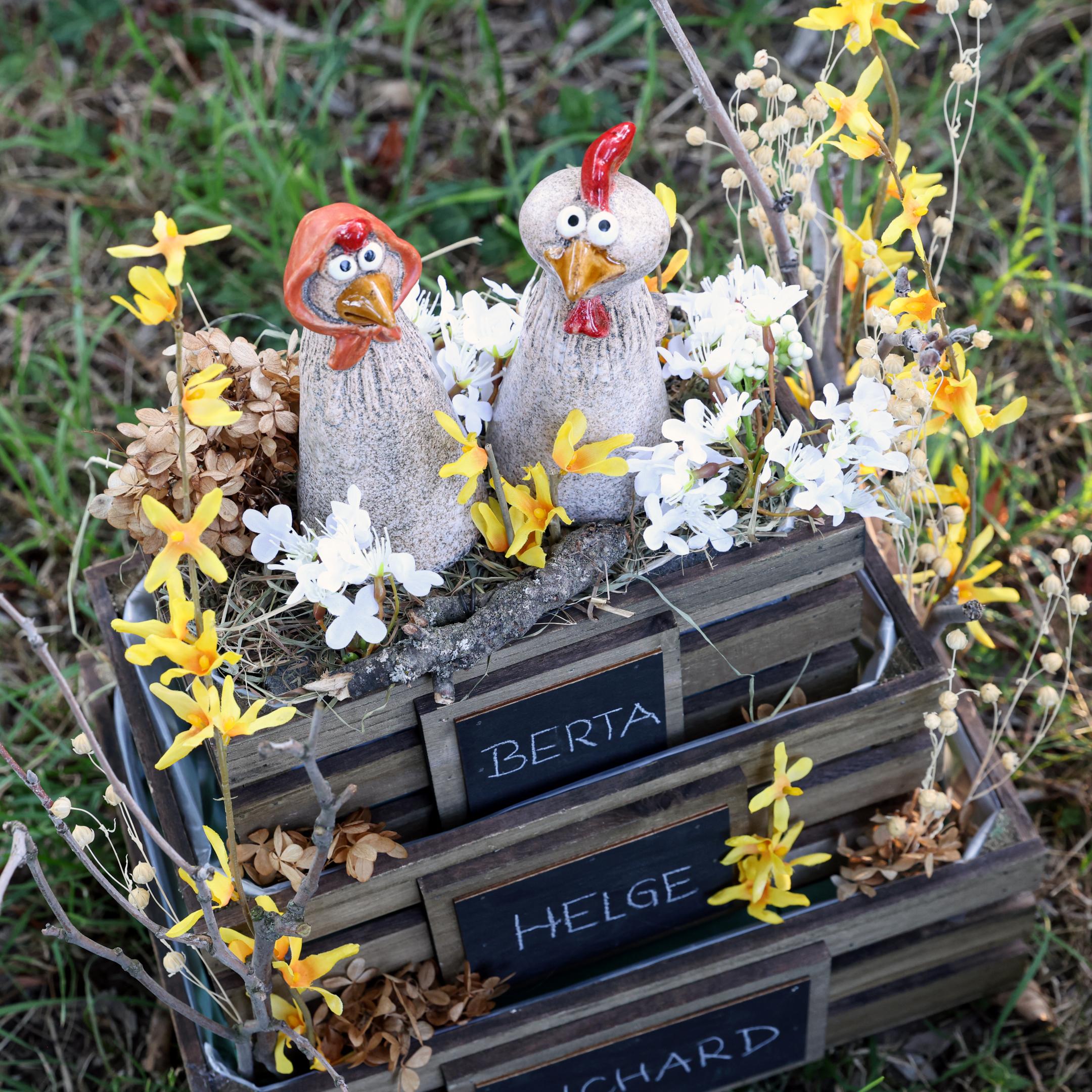Österliche Keramik-Deko: Hahn und Henne im witzigen Landhausstil