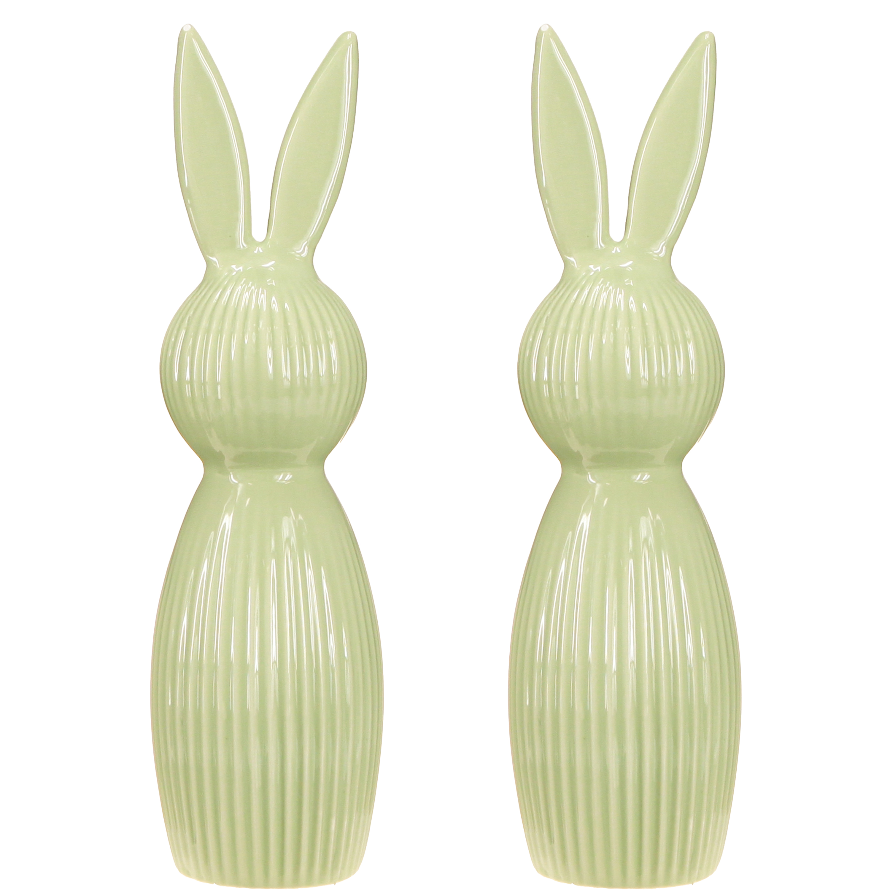 Mit einer Höhe von 22 cm und einem Durchmesser von 7 cm bringen die Hasenfiguren genau die richtige Größe mit, um als Eyecatcher zu wirken, ohne dabei aufdringlich zu sein. Gefertigt aus hochwertiger Keramik, überzeugen sie mit Stabilität und einem zeitlosen Look. Die Oberfläche in pastelligem Grün strahlt Leichtigkeit und Frische aus – genau das, was man sich im Frühling wünscht! Das Rillenmuster sorgt für einen dezenten, aber wirkungsvollen 3D-Effekt, der die Figuren lebendig macht.