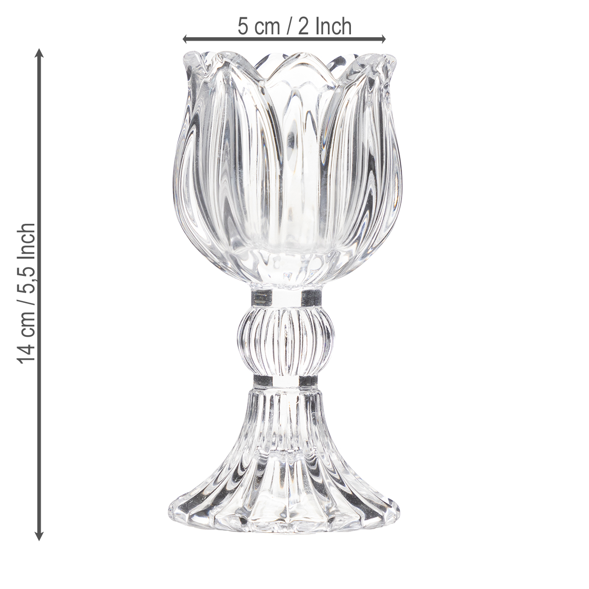 Produktname: Kerzenhalter aus Glas im Blumenmuster für elegante Tischdekoration 14cm 2St