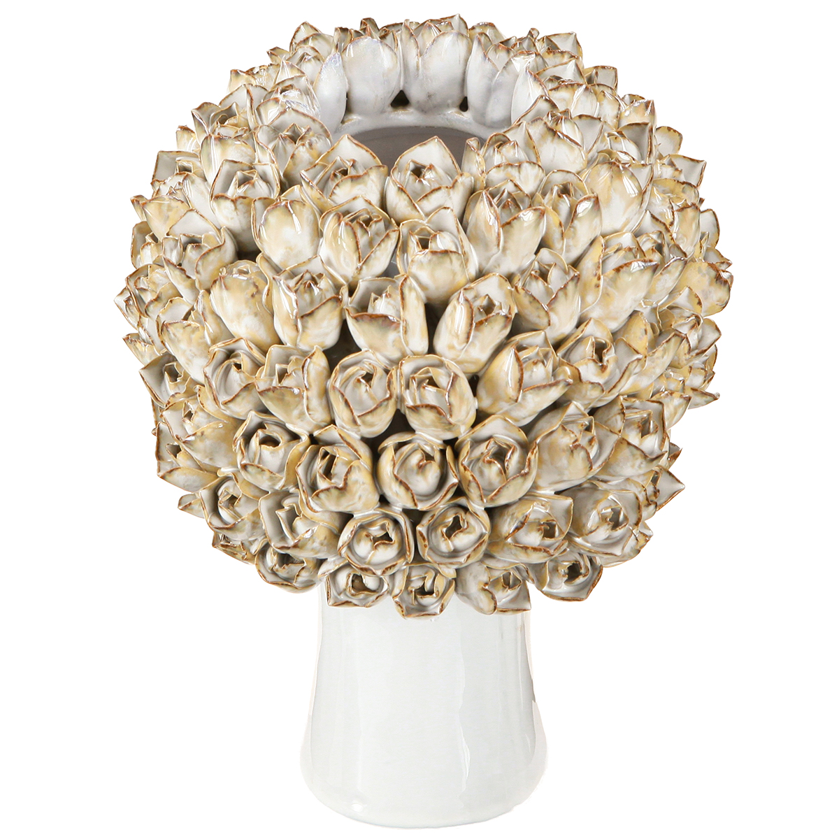 Kopfvase Keramik Vase mit Rosen Weiß Braun Ø19cm H2,5cm