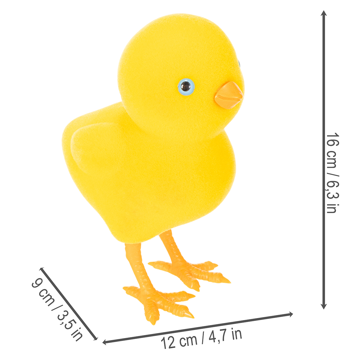 Mit einer Höhe von 16 Zentimetern, einer Breite von 9 Zentimetern und einer Länge von 12 Zentimetern bieten diese gelben Küken Figuren die perfekte Größe für vielseitige Deko-Ideen. Ihr leuchtendes Gelb bringt Frühlingsgefühle in jedes Wohnzimmer und ergänzt Ihre bestehende Osterdekoration harmonisch. Die Figuren sind leicht, stabil und bestehen aus hochwertigem Kunststoff, was sie besonders langlebig und pflegeleicht macht.