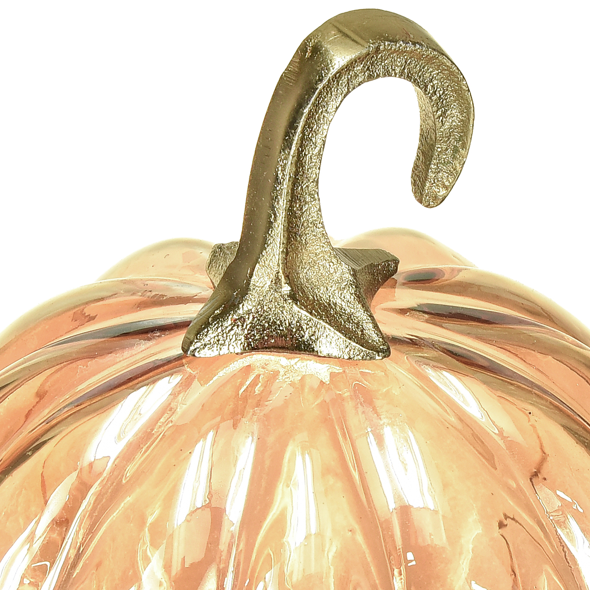 Produktname: Glaskürbis Dekoration in Orange mit Perlmutteffekt und Metallstiel 1 Stück