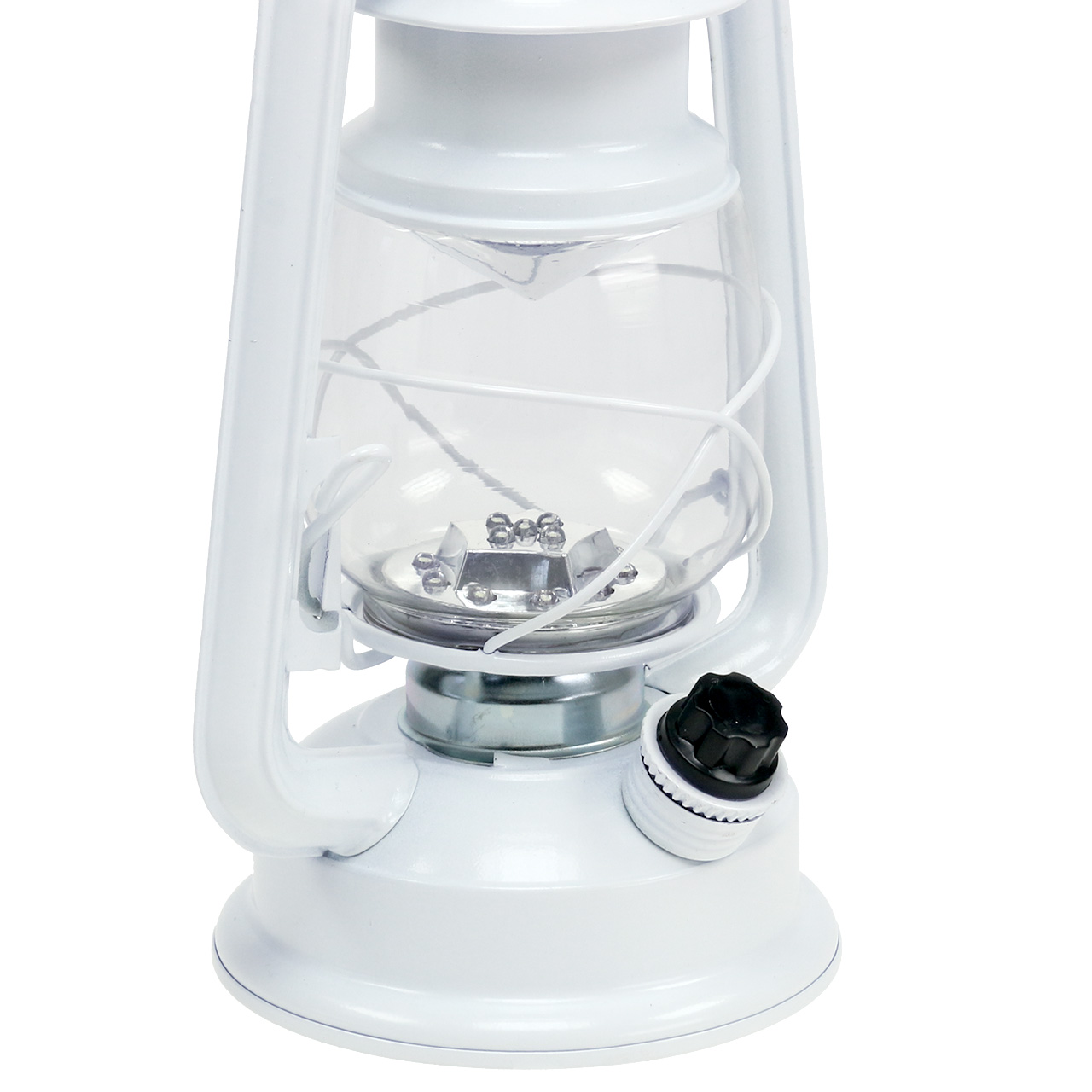 An der Seite befindet sich ein praktischer Drehknopf, der, nach rechts gedreht, die 15 LED-Lampen im Glasbehälter anschaltet. Je weiter Sie den Schalter nach rechts drehen, umso heller werden die Birnchen.