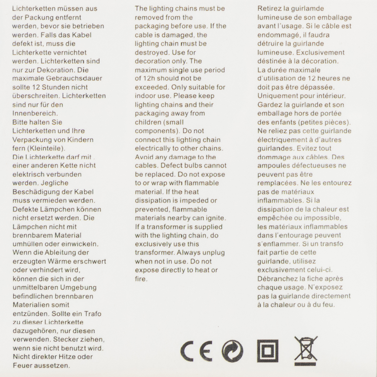 Lichterketten nur gemäß Herstelleranleitung verwenden.