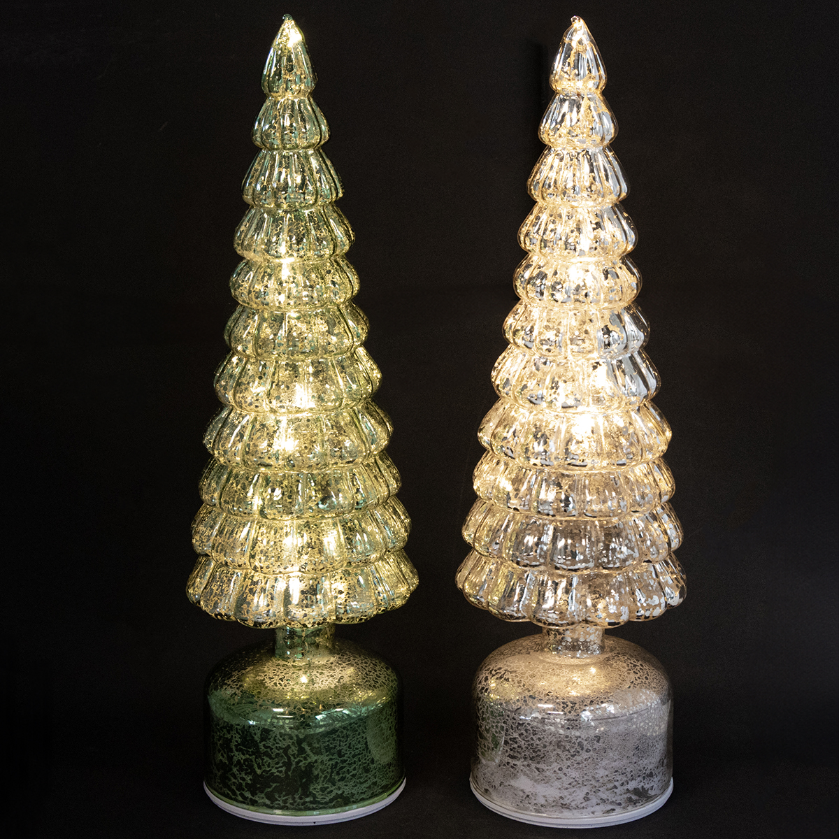 Einzigartiges Design im Vintage-Stil: die LED Weihnachtsbäume in Grün und Silber