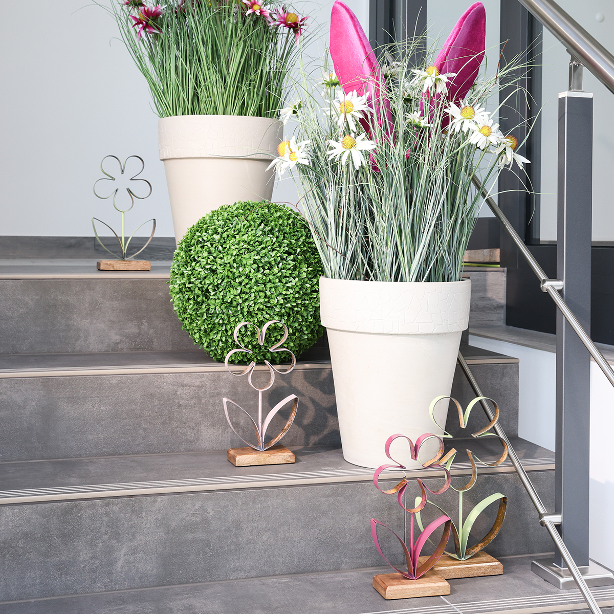 - Die Metallblume eignet sich hervorragend als Highlight unter Pflanzen oder neben anderen Deko-Artikeln von Floristik24.